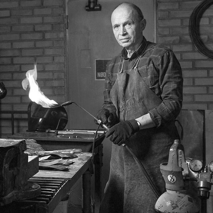Pål Vigeland works with objects made of metal. With a background as a goldsmith, his fascination with entirely different metal materials has gained increasing focus. Surfaces bearing traces of previous use, which develop a natural patina, have served as the starting point for many of his works over the past 40 years.