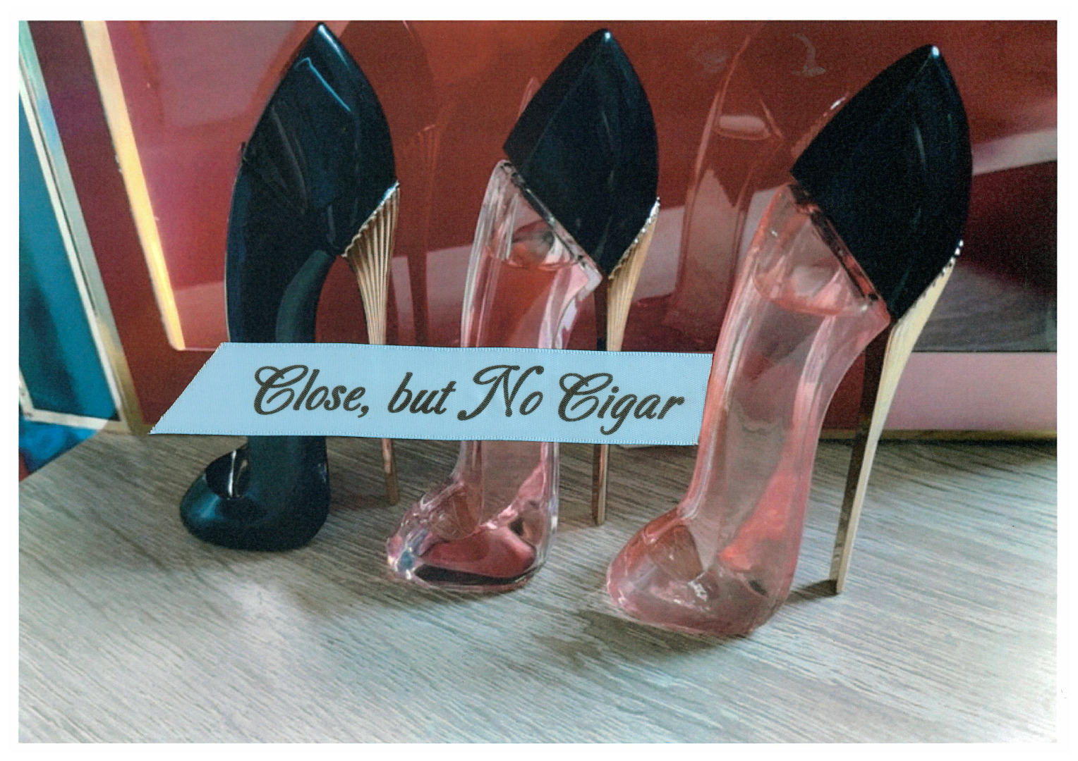 He asks if I like Good Girl by Carolina Herrera. I tell him I have never smelled it. He takes out a large pump and sprays directly onto me several times. The sound is sharp. The scent settles into my jacket, my hair, my skin.