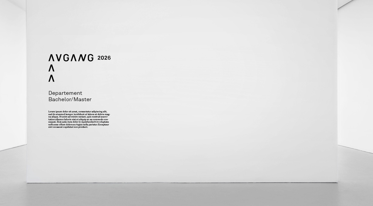 Skilt med avdelingsinformasjon, informasjon om utstilling eller navn på avgangsstudentene printes på folie og monteres på vegg. For å bruke Idml-fil må du installere skrifttypen Akkurat regular.